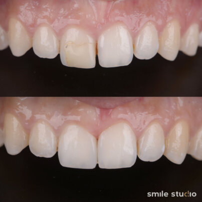 - Odbudowa uszkodzonego szkliwa (pęknięcia lub ukruszenia)