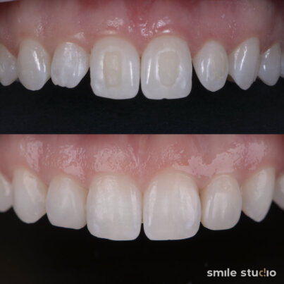 Licówki kompozytowe wykonujemy przy użyciu koferdamu, mikroskopu lub lup stomatologicznych. Materiały wykorzystywane do odbudowy to nano-hybrydowe materiały kompozytowe charakteryzujące się wysoką wytrzymałością oraz świetnym efektem estetycznym.